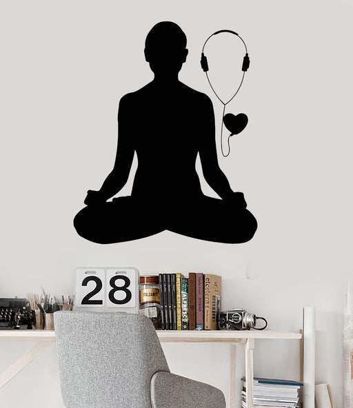 Виниловые наклейки на стену Музыкальные наушники для медитации Йога Музыка Наклейки Уникальный подарок (ig3205)