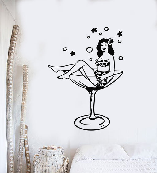 Виниловая наклейка на стену Обнаженная женщина Девушка Pin Up Ретро Стиль Бурлеск Бокал для мартини Наклейки Mural (g1138)