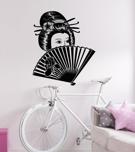 Виниловая наклейка на стену Восточное искусство Веер Гейша Японские наклейки для интерьера Фреска (g6388)