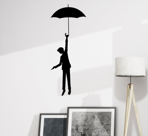 Наклейка на стену Мальчик Летающий Зонт Дождь Декор Виниловая наклейка (ed2065)