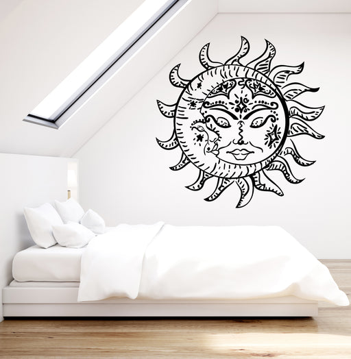 Виниловые наклейки на стену Ночная спальня Абстрактные полумесяц Солнце лицо наклейки фреска (g2376)