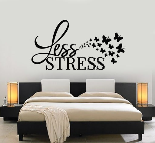 Виниловые наклейки на стену со словами «Меньше стресса, релаксация, спальня, бабочки, наклейки, фреска» (g2212)
