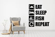 Виниловая наклейка на стену с надписью «Ешь, спи, рыба», повторяющаяся фраза «Фишер», слова, наклейки, настенная живопись (g8225)
