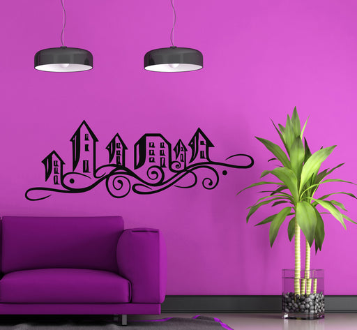 Наклейка на стену из винила Маленький старый европейский городок домашний интерьер декор уникальный подарок (n474)