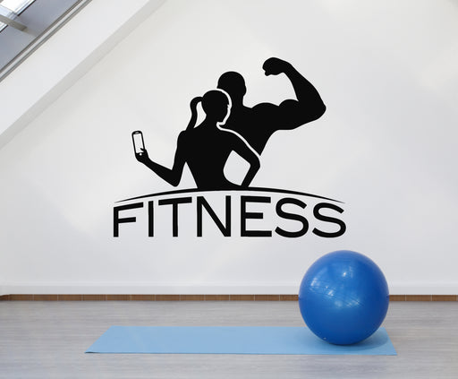 Виниловые наклейки на стену Спортивный зал Мужчина Девушка Фитнес Модель Бодибилдинг Спортивные наклейки Фреска (g5542)