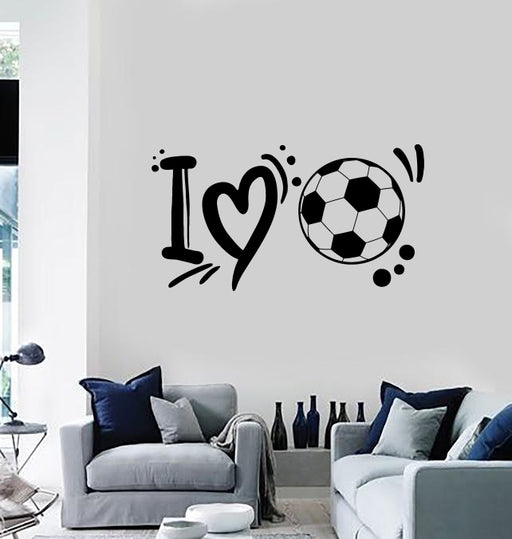 Наклейка на стену из винила с надписью «Я люблю футбольный мяч в форме сердца» Уникальный подарок (n1173)