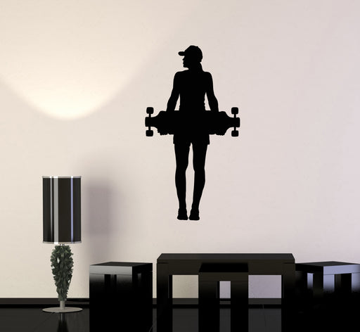 Виниловая наклейка на стену с изображением девушки-скейтбордиста, силуэта подростка, катающегося на скейтборде, настенные наклейки (ig6095)