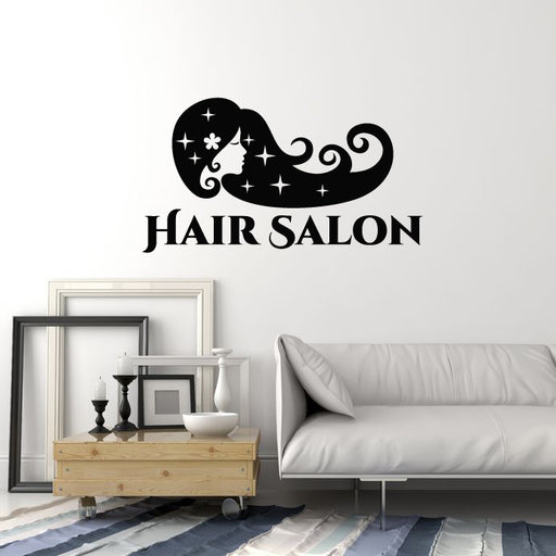 Виниловые наклейки на стену Женщина Длинные волосы Спа Цветок Салон красоты Наклейки Фреска (g891)