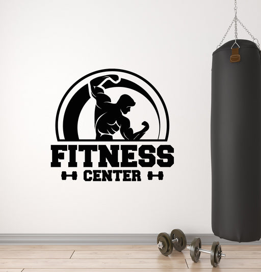 Виниловые наклейки на стену с логотипом Gym Fitness Word Muscular Body (3706ig)