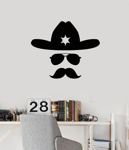 Виниловая наклейка на стену с лицом шерифа, усами и шляпой, декор комнаты, наклейки для интерьера, настенная роспись (ig5668)
