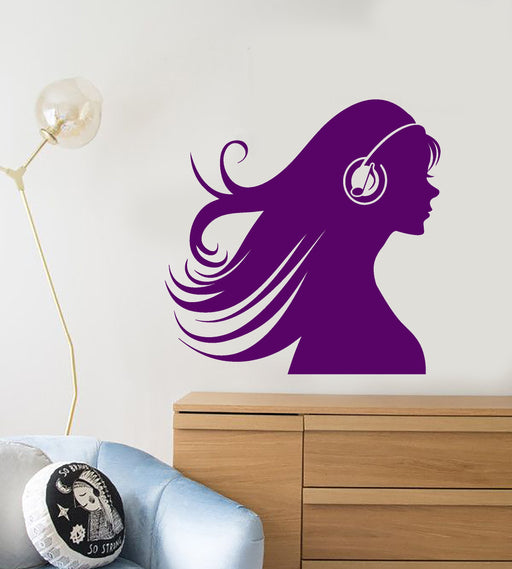 Виниловая наклейка на стену силуэт девушки в наушниках меломан наклейки (2450ig)
