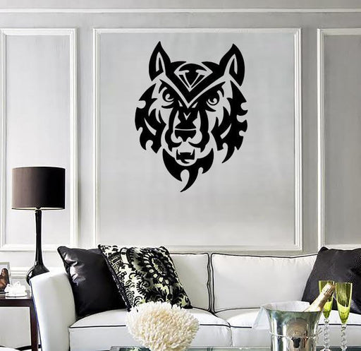 Наклейки на стену Виниловая наклейка Голова волка Хищное животное Племенной декор Уникальный подарок (ig169)