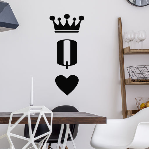 Виниловая наклейка на стену Королева Сердце Азартные игры Корона Покер Карты Декор Наклейки Фреска (g9766)