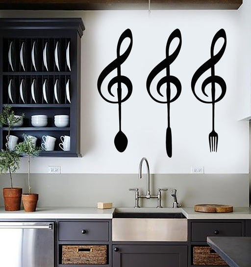 Виниловая наклейка на стену нож вилка ложка ноты столовые приборы кухонный декор наклейки (3424ig)