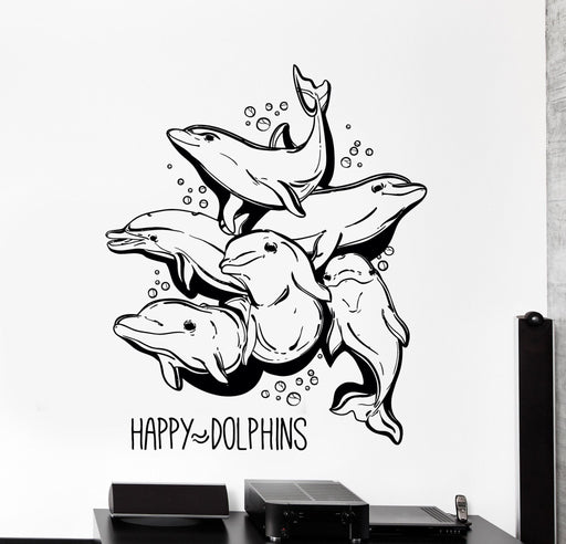 Наклейка на стену из винила Дельфины Семья Счастливые дети Детский интерьер Детской комнаты Уникальный подарок z4175
