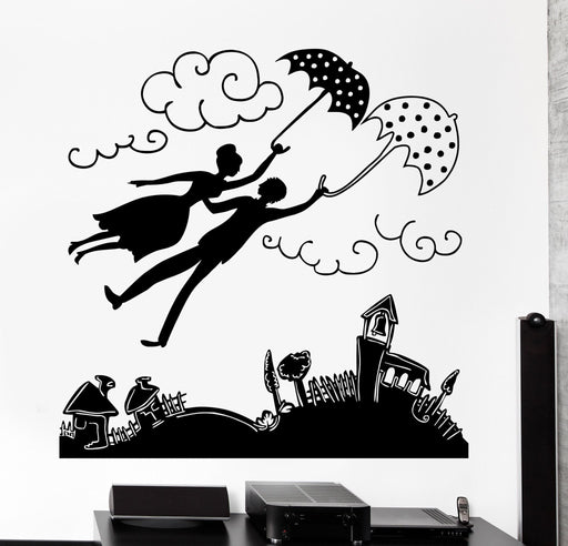 Наклейка на стену из винила Романтическая любовь Влюбленные Зонтик Летающий маленький город Декор Уникальный подарок z4091