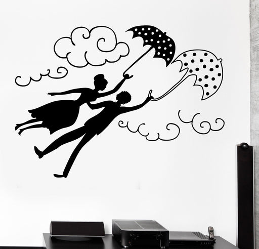 Наклейка на стену из винила Летающая пара Любовь Романтичный Шагал Маленький городок Зонт Уникальный подарок z4092