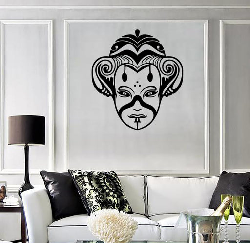 Наклейка на стену из винила Экзотическая японская маска Театральное искусство Tsure Noh Наклейка Уникальный подарок (n1529)