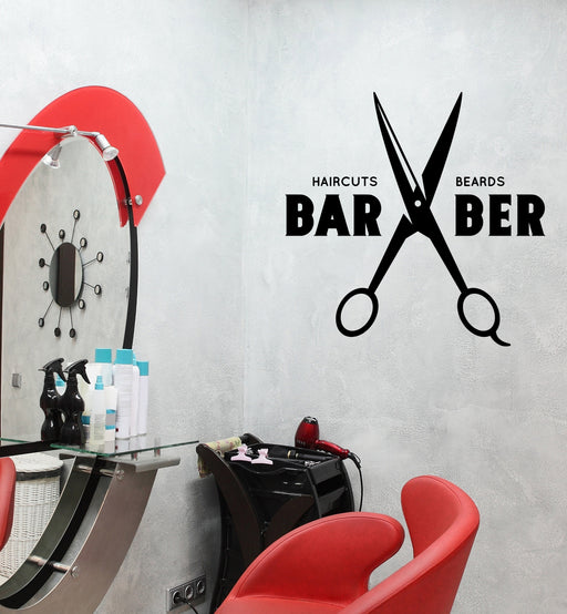Наклейка на стену из винила парикмахерская усы стрижка ножницы парикмахерская декор уникальный подарок z4742