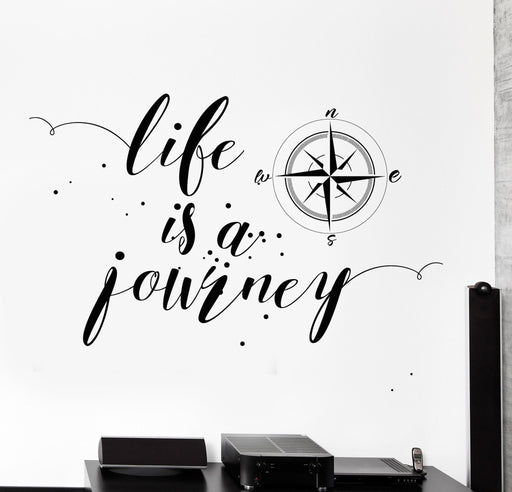 Наклейка на стену из винила с мотивирующей цитатой «Жизнь — это путешествие», компас, звезды, декор, уникальный подарок z4368