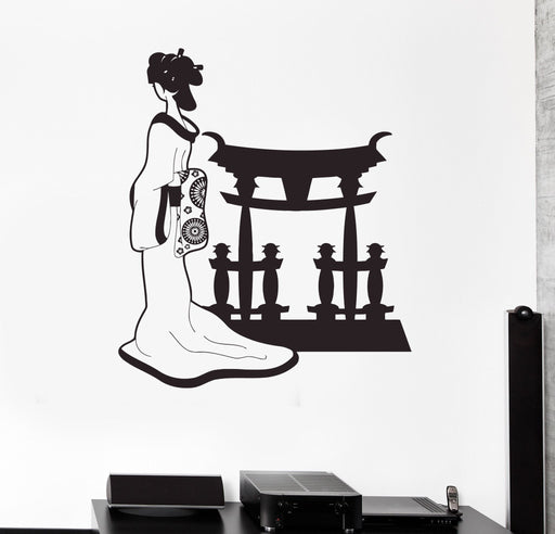 Наклейка на стену Красивая гейша Японские ворота Восточная Япония виниловые наклейки Уникальный подарок (ig2854)