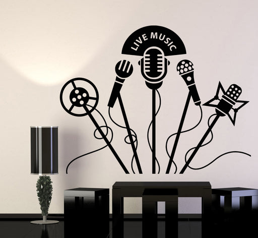 Виниловые наклейки на стену Ретро микрофоны караоке клуб живая музыка наклейки уникальный подарок (1249ig)