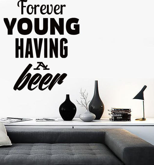 Наклейки на стену виниловые цитаты слова вечно молодой с пивом z1544