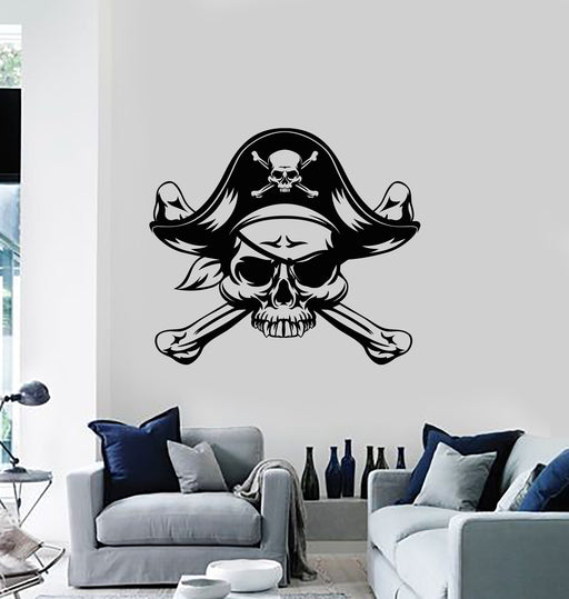 Виниловая наклейка на стену Череп Пиратский скелет Шляпа Море Детская комната Наклейки Фреска (g1464)