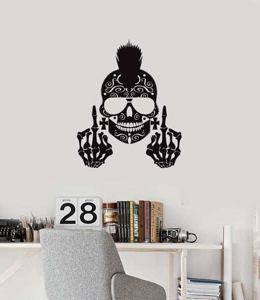 Виниловая наклейка на стену Череп Панк Скелет Средний палец Декор Искусство Наклейки Фреска (ig5648)