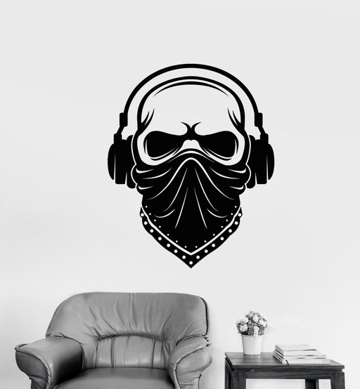 Виниловая наклейка на стену Череп в наушниках Музыка Лицо Косынка Бандана Маска Наклейки (3008ig)