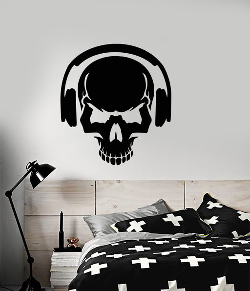 Виниловые наклейки на стену Череп любителя музыки Наклейки для наушников (3474ig)