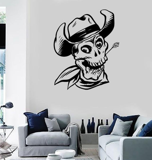 Виниловая наклейка на стену с изображением черепа в ковбойской шляпе из вестерна, наклейки на стену в стиле Дикого Запада (g8694)