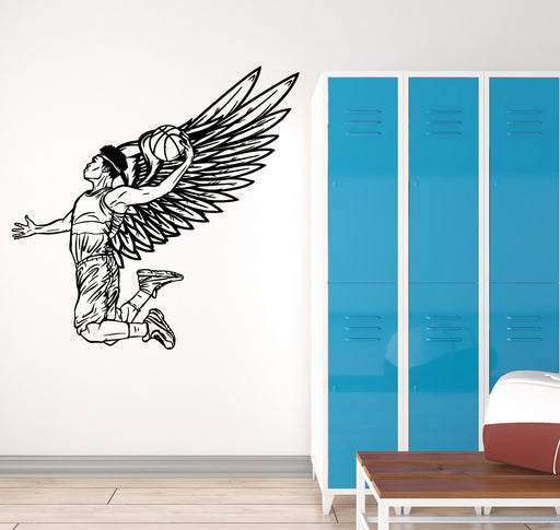 Виниловая наклейка на стену баскетбольная игра спортивный мяч игрок с крыльями наклейки фреска (g6179)