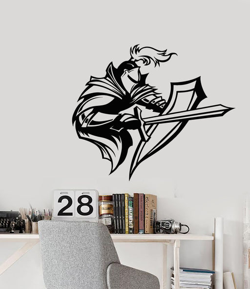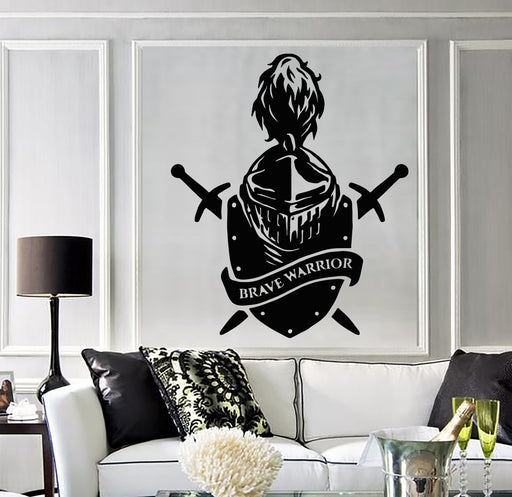 Виниловая наклейка на стену рыцарский шлем перо меч воин средневековье наклейки уникальный подарок (1588ig)