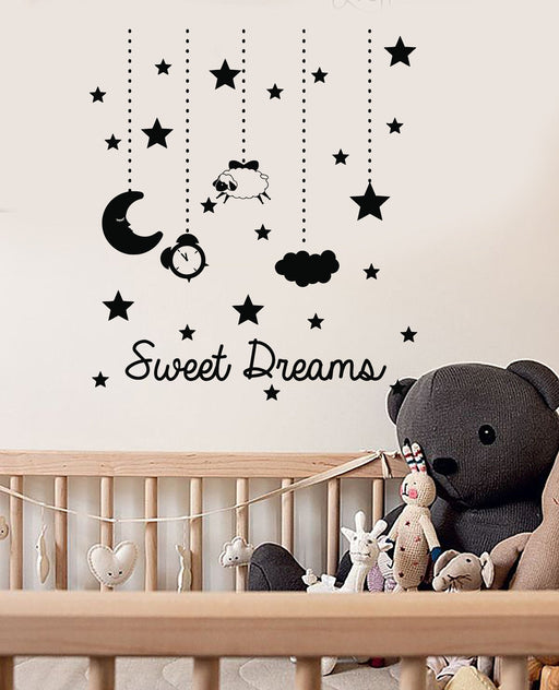 Виниловая наклейка на стену Sweet Dreams Спальня Детская Звезды Овцы Наклейки Уникальный подарок (ig4098)