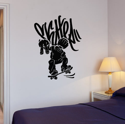 Наклейка на стену скейтбордист экстремальный вид спорта активный уличный скейт виниловые наклейки уникальный подарок (ed172)