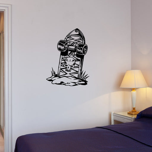 Наклейка на стену Скейтбордист Скейтборд Могила RIP Надгробие Виниловая наклейка (ed1290)
