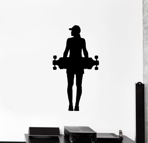 Наклейка на стену с изображением скейтбордиста Спортивная девушка на скейтборде Силуэт Виниловая наклейка (ed1341)