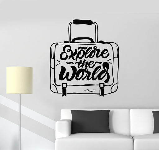 Виниловые наклейки на стену со словами «Исследуйте мир туризма путешествия чемодан наклейки фреска» (g1557)