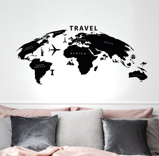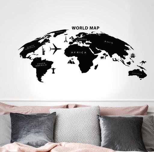 Виниловая наклейка на стену Атлас мира Карта Путешествия Приключения География Наклейки Фреска 35 дюймов x 17,5 дюймов gz276