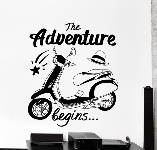 Наклейка на стену из винила Цитата о путешествии Скутер Приключение начинается Домашний декор Уникальный подарок z4244