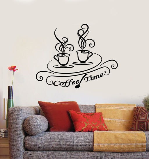 Виниловые наклейки на стену Чашки кофе Время кафе Кухня Столовая Наклейки Фреска (g1861)